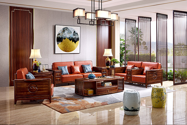 新中式家具在形式上简化了许多,通过运用一些简单的几何形状或者朴素的颜色来表达情感,在设计上继承了唐代、明清时期的家居理念精华,提取了其经典的元素并加以丰富,同时改变了原有的尊卑封建思想,给传统家居文化注入了新时代的血液。它的特点主要酒店家具是古典、优雅,由于灵感本身来源于中国古代,民族气息很浓,特别是在色调山,新中式风格的家具颜色大多是朱红色、咖啡红、棕红色等一些庄重的色调占据主导地位。