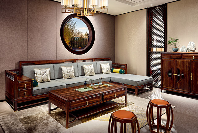 新中式家具家居生活中的家具和器物造型向来被重视,瓶花、佛头、茶器、灯具等等都极富于变化。